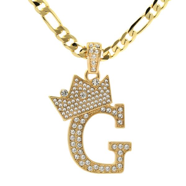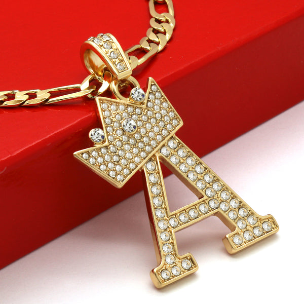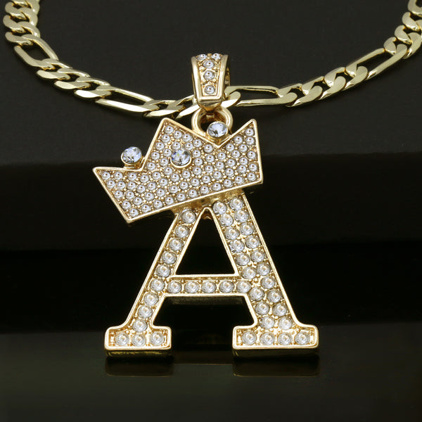 FIGARO CHAIN ALPHABET PENDANT CROWN A-Z