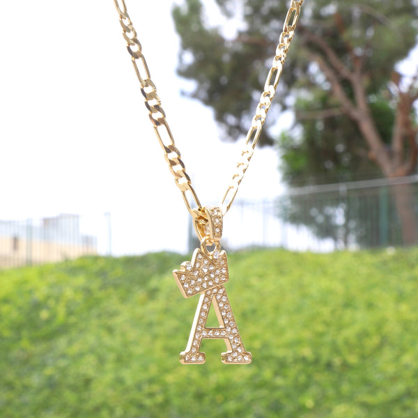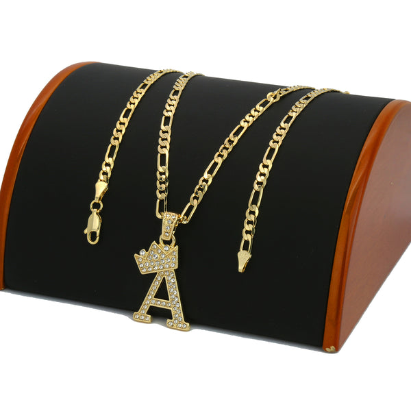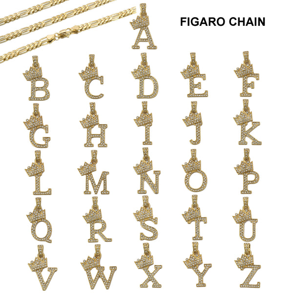FIGARO CHAIN ALPHABET PENDANT CROWN MINI A-Z