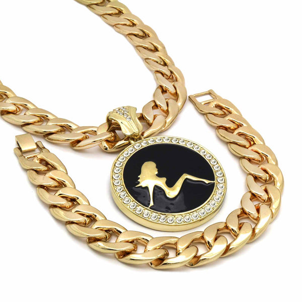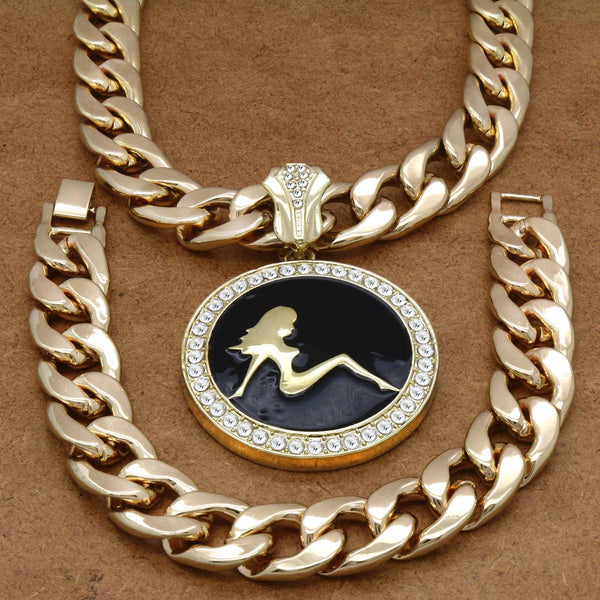 CUBAN CHAIN & BRACELET GOLD/BLACK SEXY GIRL