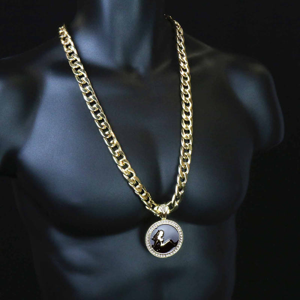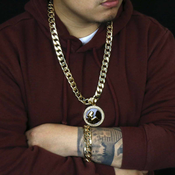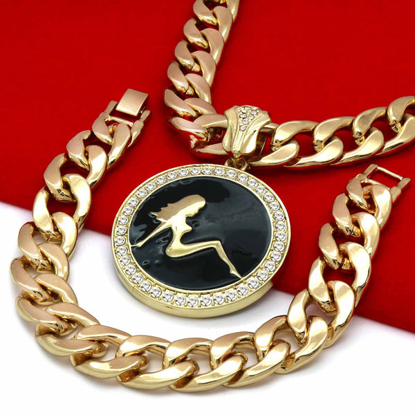 3 PCs Bundle Iced Out Gold/Black SEXY Pendant With Cuban Chain 14 mm 30" Cuban Chain + 14 mm 8" Cuban Bracelet Elegant Fully ICED OUT Cuban Chain Necklace Makes You...