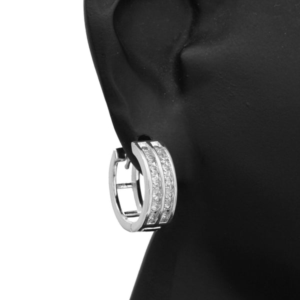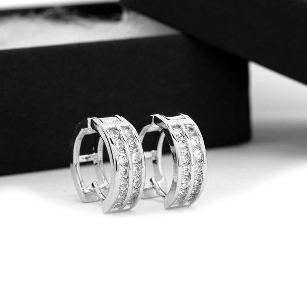 Huggie Hoop 2 Row Silver Filled and Cubic Zirconia Earring Measurements: 10mm/1.4c Pierced Stud Earrings CLASP To Make You More Shiny and Confident. Wherever You Go, The EARRINGS Makes You Stand...