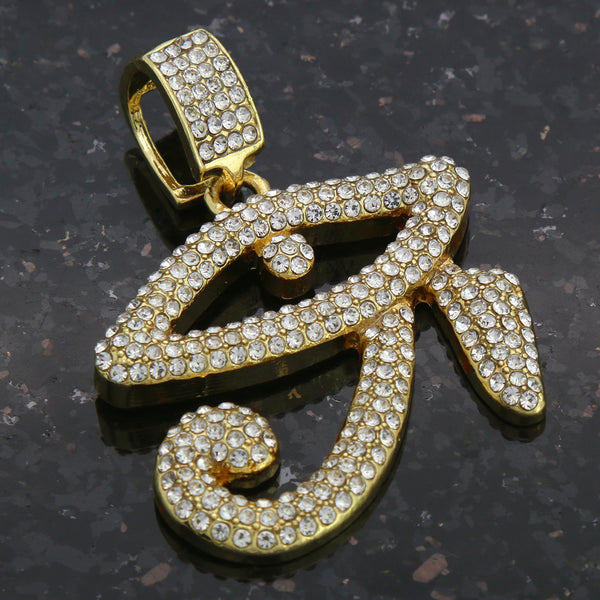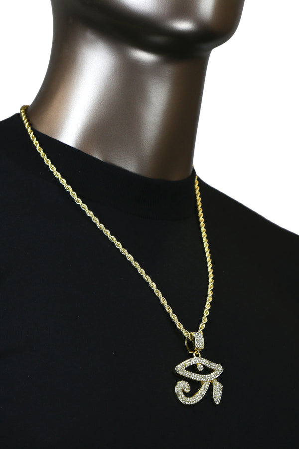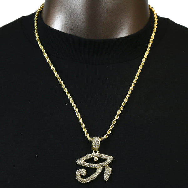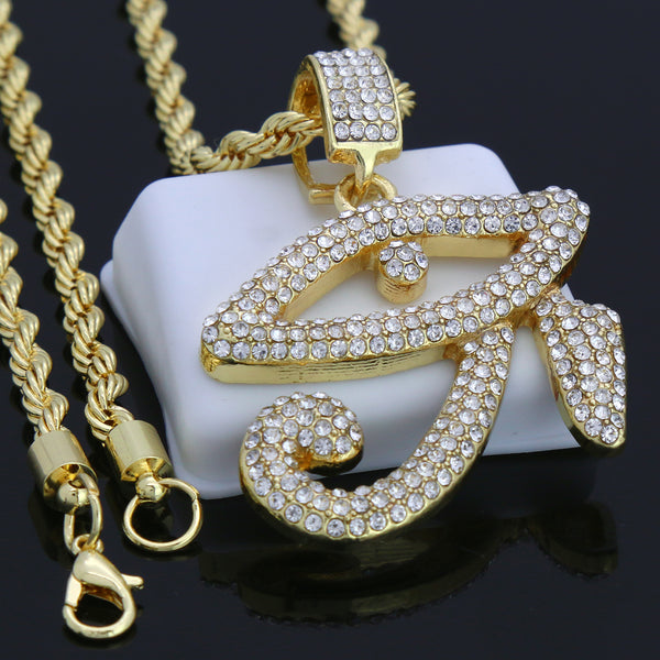 This listing is for One chain and Pendant Together. Color: Gold Size: Pendant--11/2" x 11/4" / Chain--4mm 24"Inches 14K Gold Filled Iced Out Eye Pendant with 4mm 24" Rope Chain...