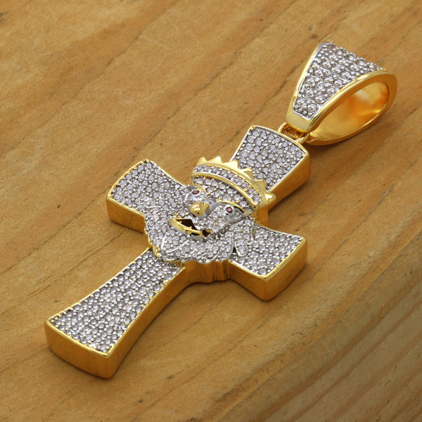 CROWN LION CROSS PENDANT