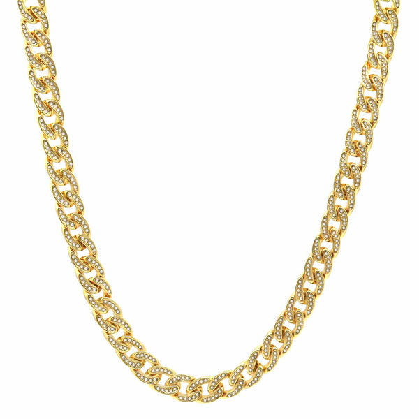 Elegant Fully ICED OUT Cuban Chain Necklace Makes You Shine Perfect. High-impact 14k Gold Plating over BrassĀ  LustrousĀ 14K Gold Finish in front of all links Fully Iced Out 8 mm/30"INCHES...