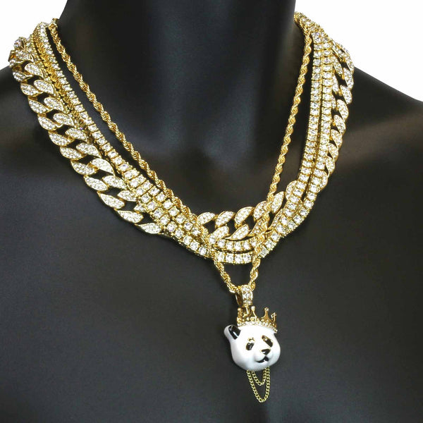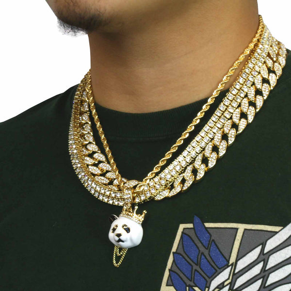 The BlingKingStar Tennis/Cuban Choker Set pays tribute to the multi use trend rooted by prominent hip hop artists And Sport Stars. Each choker is plated with a 14K Gold finish...
