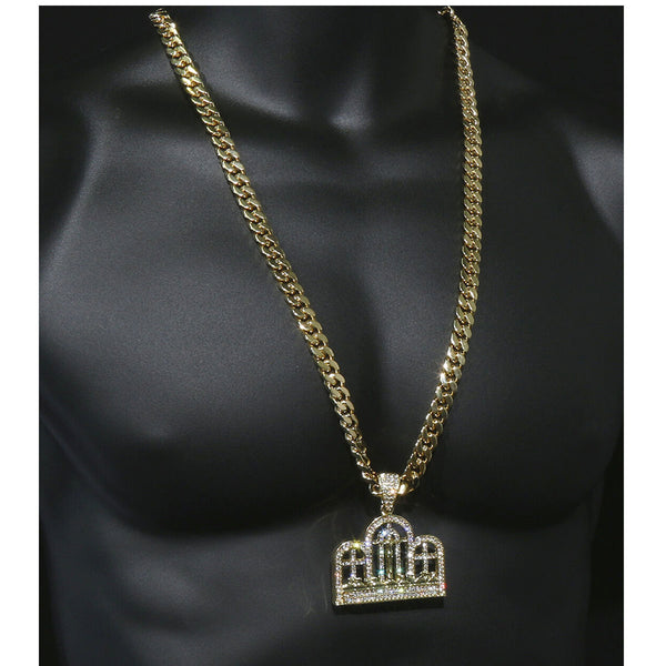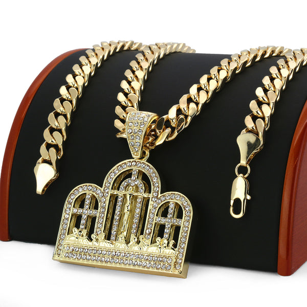Color:Gold Size: Pendant:21/2" x 2" / Chain:10 mm 30"  Iced Out Gold Last Supper Pendant With 10 mm 30" Cuban Chain  Hip Hop Bling 14K Gold Filled Necklace Pendant Gold Over...