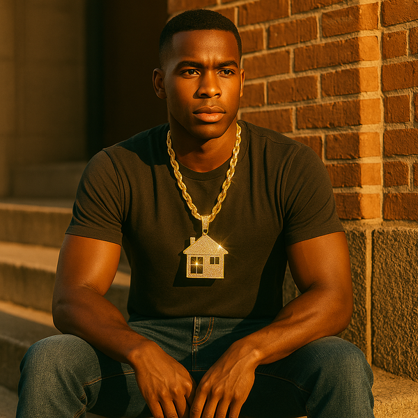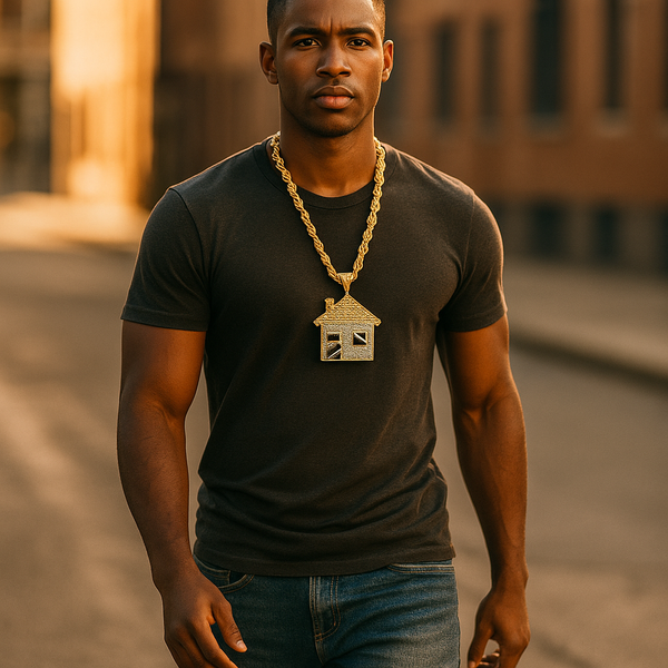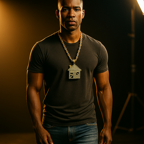 Make a bold impression with our Giant Gold Stardust House Necklace – where street style meets luxury.This massive 4" x 4" pendant is iced out with dazzling CZ stones and...