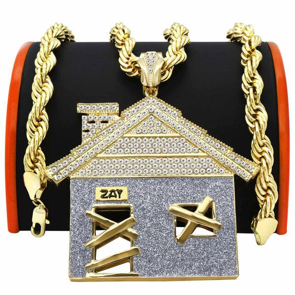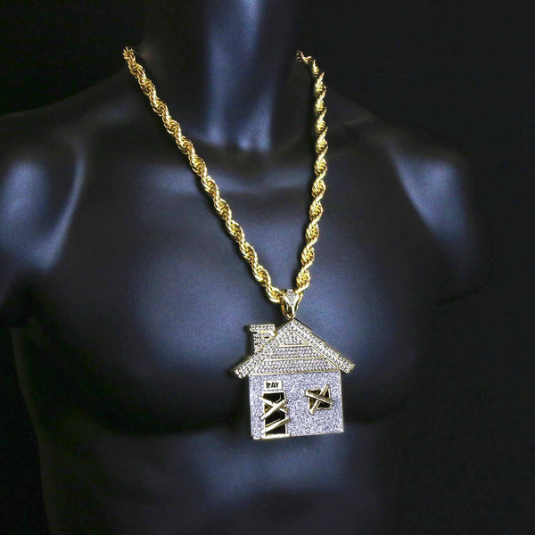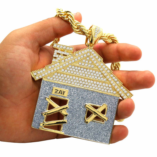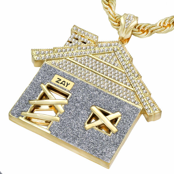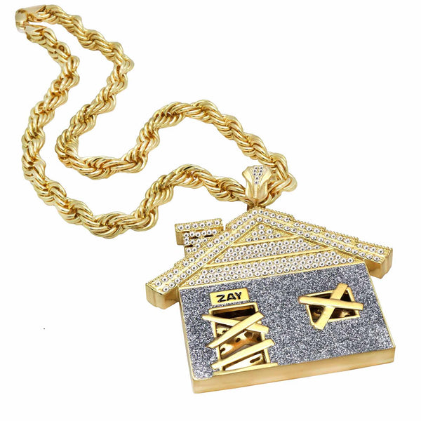 Giant Stardust House Pendant – Gold & Silver Iced Out Necklace with 30" Rope Chain