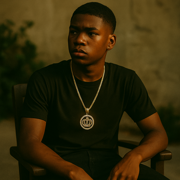 Indulge in luxury with our Gold Black Crown Necklace, a statement piece designed for those who seek elegance and bold style. This 2.5" x 2" iced-out gold crown pendant is...
