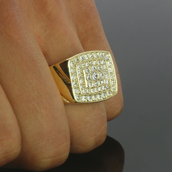 Rectangle Side Cut 14K Gold Filled Mens Ring Hip- Hop Style Goth Goddess Medusa Ring DESIGN Fashion Style for boys and men,women, girls Available Size: Mens Womens 7,8, 9, 10, 11,...
