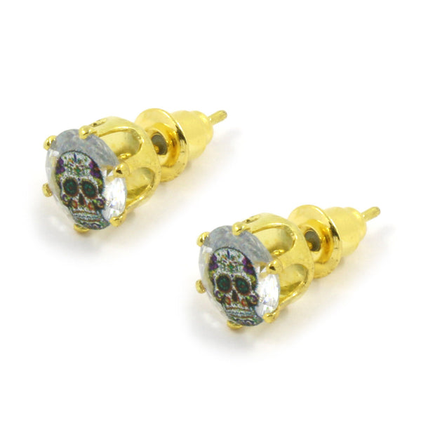 Candy Skull Cubic Gold Filled and Cubic Zirconia Earring Measurements: 8mm Pierced Stud Earrings Screw backs To Make You More Shiny and Confident. Wherever You Go, The EARRINGS Makes You...