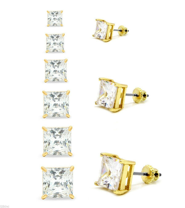 Gold Cz Square Cubic 12 pcs Gold Filled and Cubic Zirconia Earring Measurements: 3 mm-8 mm Pierced Stud Earrings Screw backs To Make You More Shiny and Confident. Wherever You...