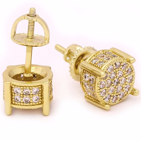 Gold Tone Micro Pave Gold Filled and Cubic Zirconia Earring Measurements: 8mm Pierced Stud Earrings Screw backs To Make You More Shiny and Confident. Wherever You Go, The EARRINGS Makes...