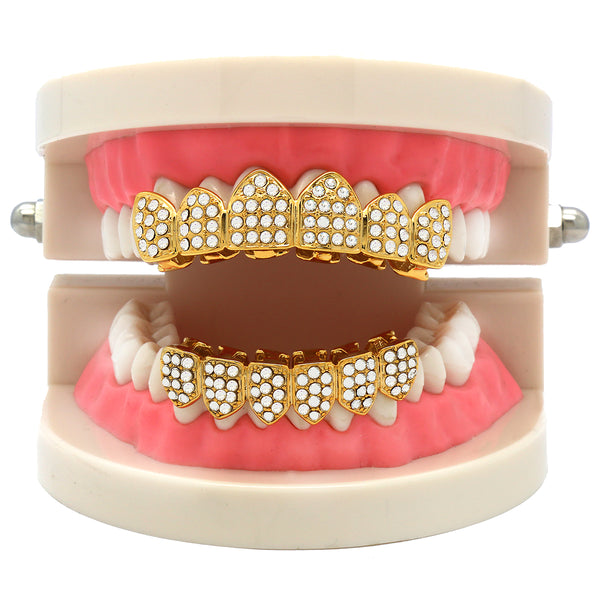 This Listing is for Top and Bottom Grillz as a Set. The grillz is Surrounded with many Stones and will Sparkle a lot in and outside of your mouth, this...