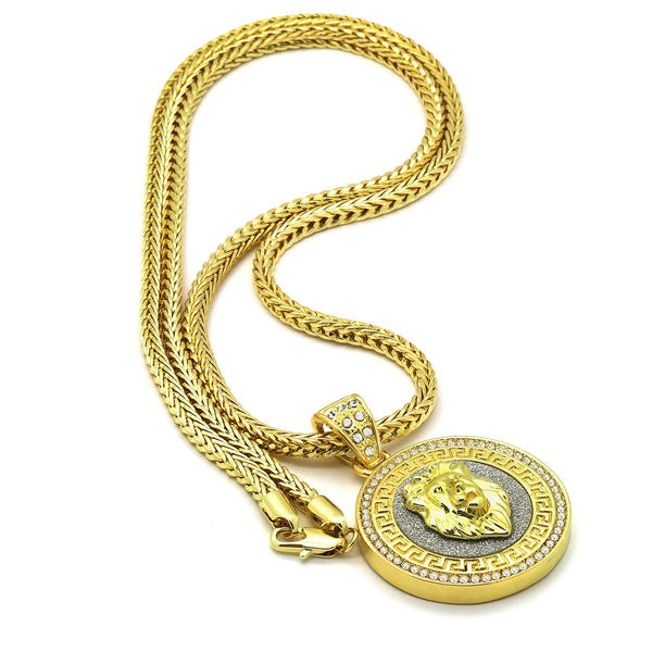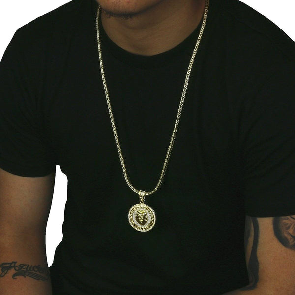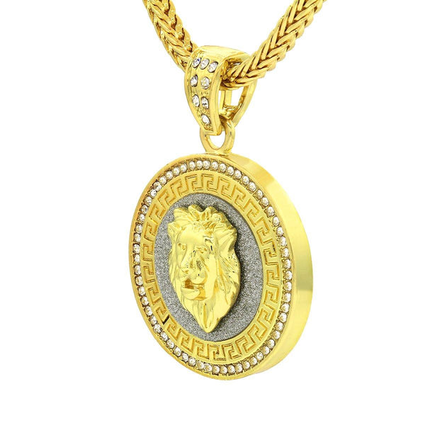Elegant 14k Gold Plated Lion Pendant Necklace.  High-impact Sparkling Diamond With 14k Lavish Gold Finish over Brass. Lustrous Silky Finish in front of all links. Diamond Lab CZ Iced Out...