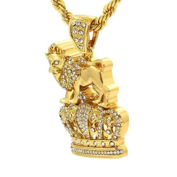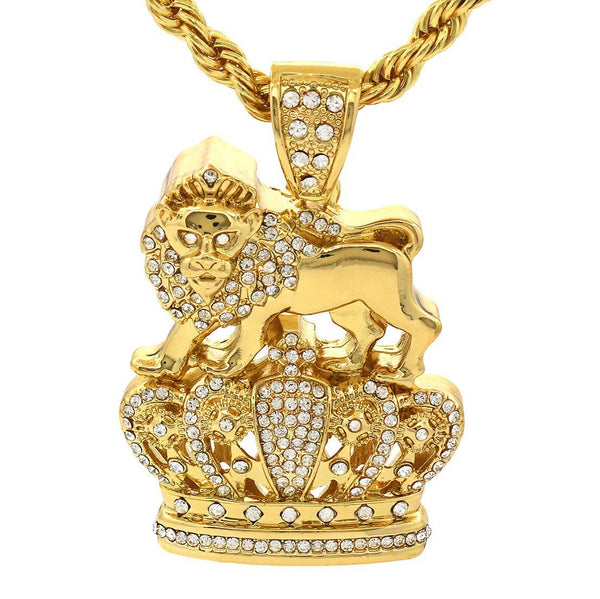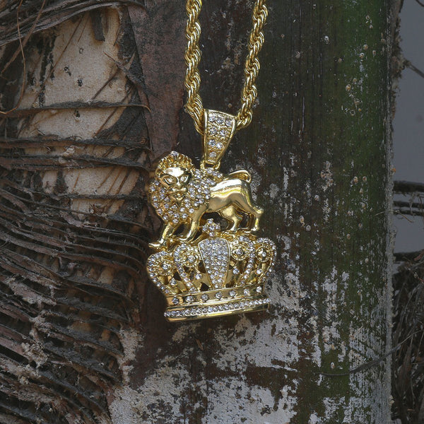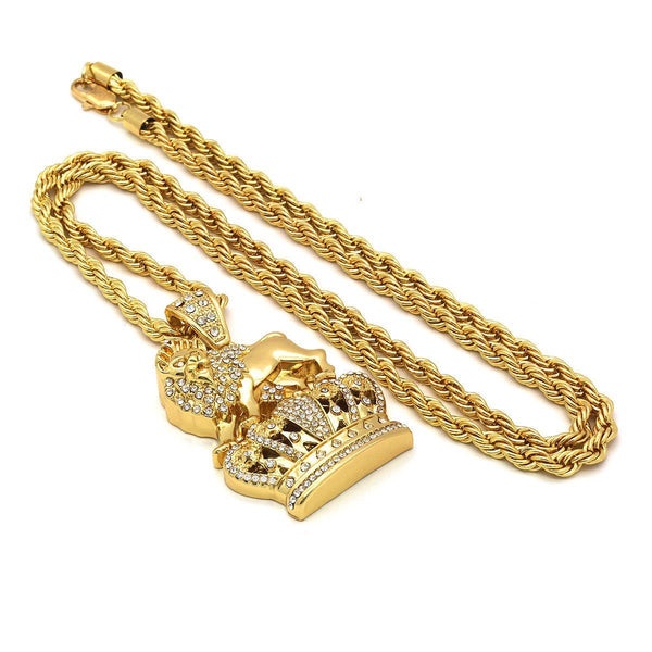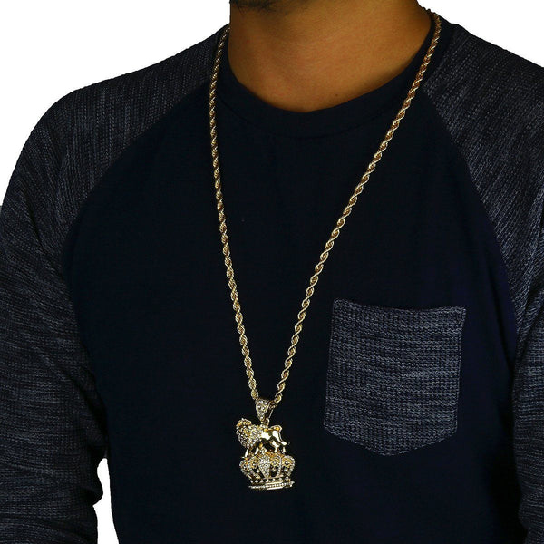 Gold Filled Royal Lion Crown Pendant with Rope Chain