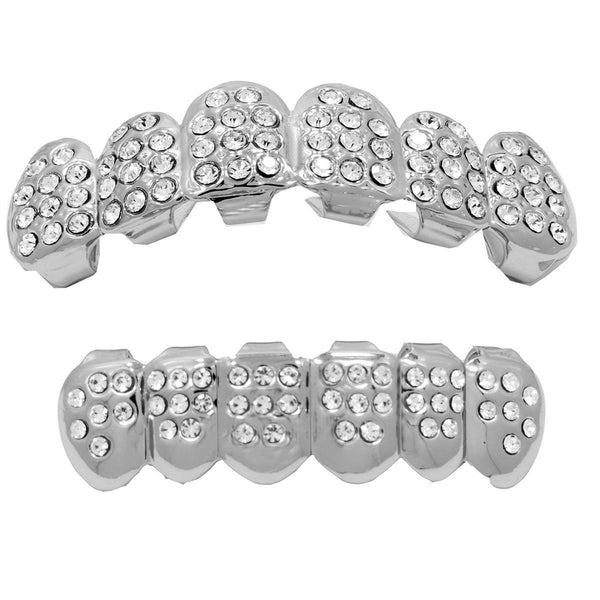 GRILLZ SET SILVER FULLY ICED KINGSTAR