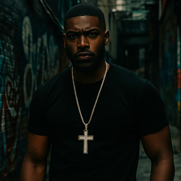 Indulge in timeless luxury with our Gold Black Cross Necklace, designed to make a statement. This stunning 4" x 2" iced-out cross pendant, featuring a bold black outline and surrounded...