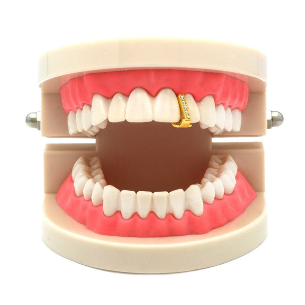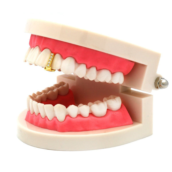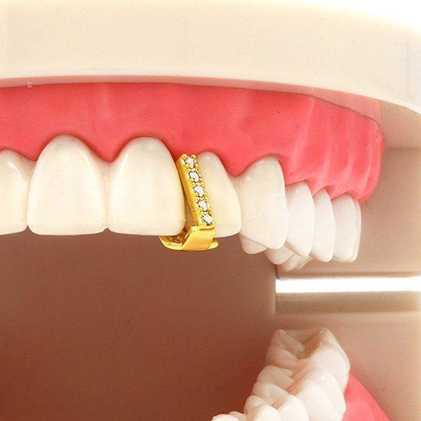 This listing is for these gold plated single tooth CZ gap Grillz. This single tooth cap will give your mouth subtle bling. Grillz comes with a storage box for safe...