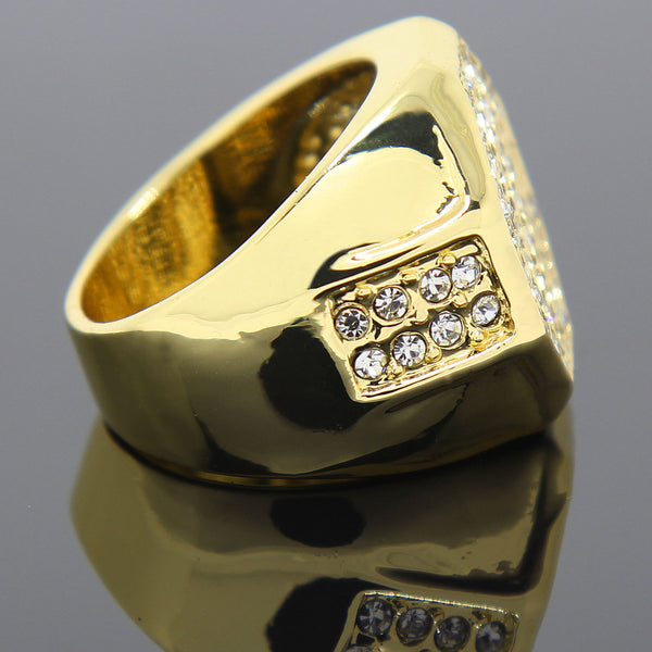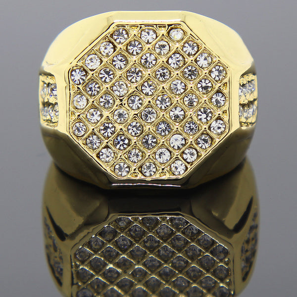 OCTAGON Iced Out middle 14K Gold Filled Mens Ring Hip- Hop Style Goth Goddess Medusa Ring DESIGN Fashion Style for boys and men,women, girls Available Size: Mens Womens 7,8, 9, 10,...