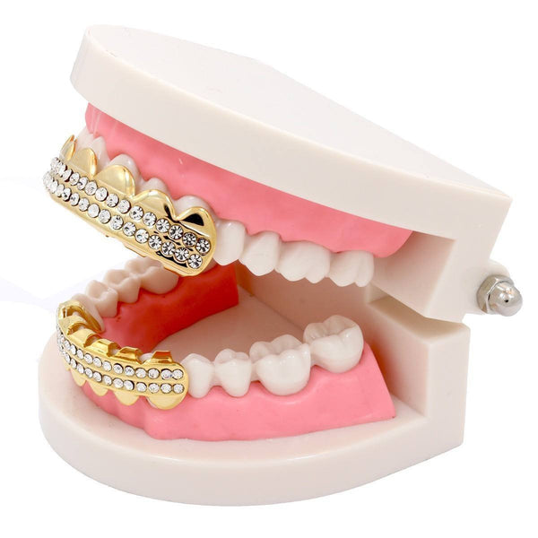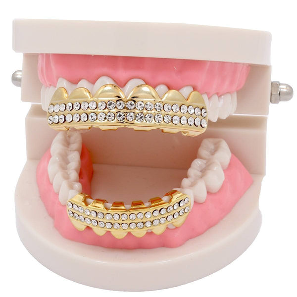 GOLD PLATED 2 ROW CLEAR BEST GRILLZ SET