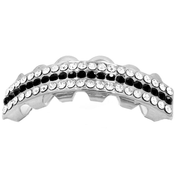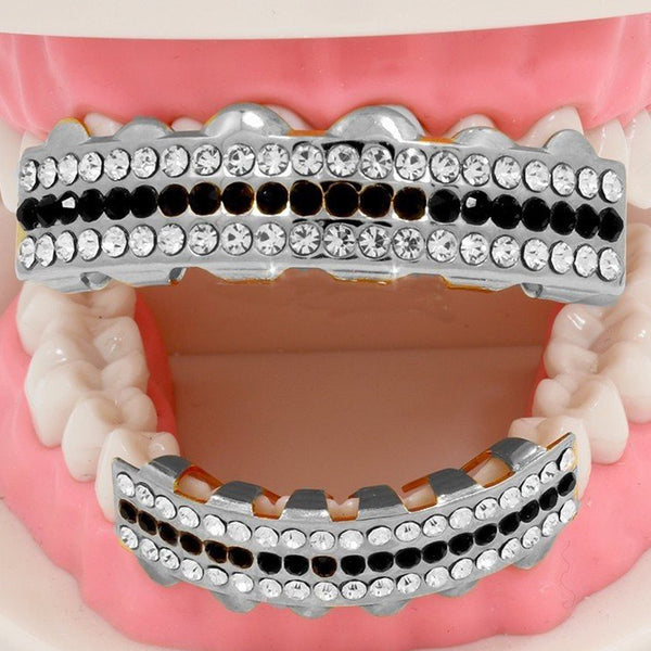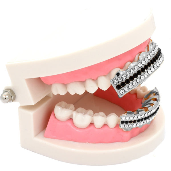 GRILLZ SET RHODIUM 3 ROW CLEAR BLACK