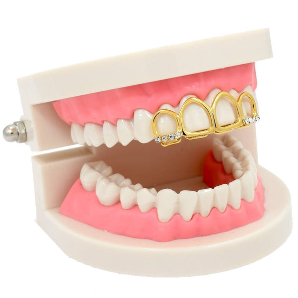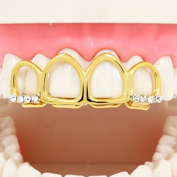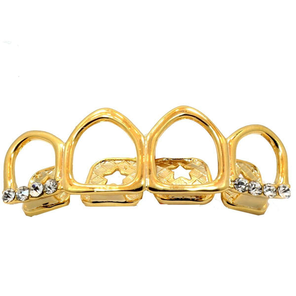 GOLD TOP GRILLZ 4 OPEN TOOTH ICED OUT