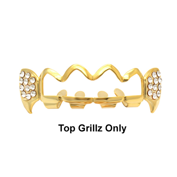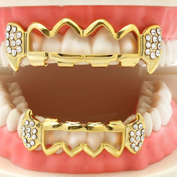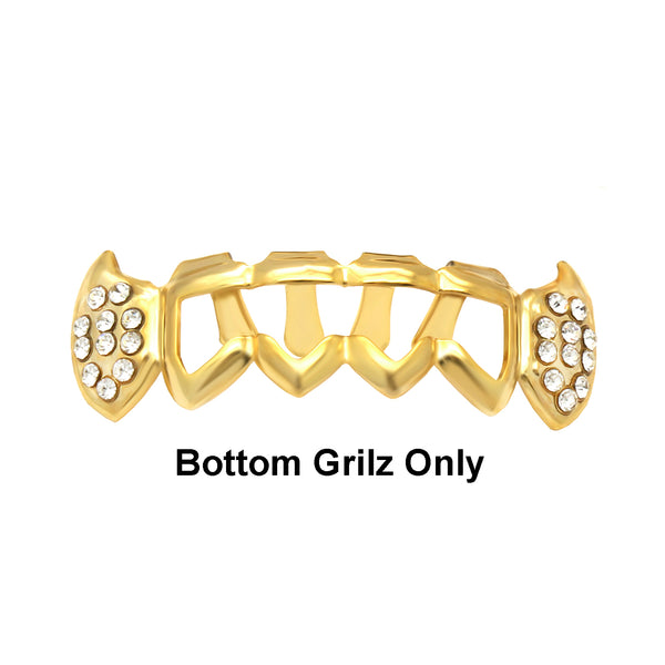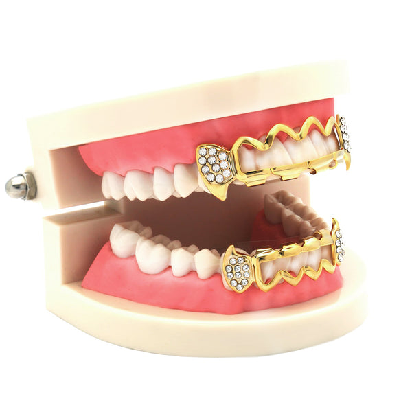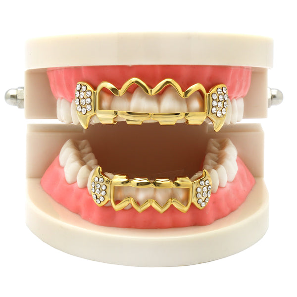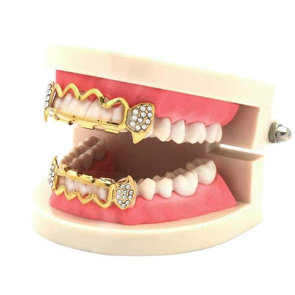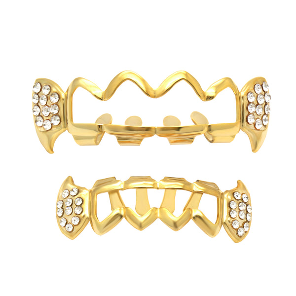 GRILLZ SET GOLD WAVE HOLLOW CZ FANG