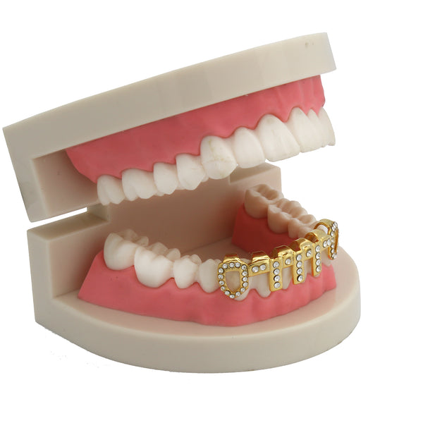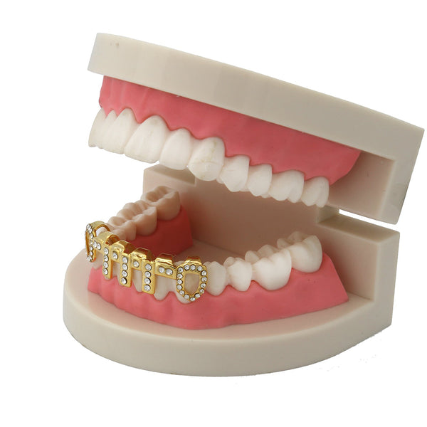 BEST GRILLZ™ Bottom Gold Vertical bars Iced out [PRE-MADE GRILLZ] FDA approved (21 CFR 175,300) All our grillz are "lead free" "nickle free" and safe to wear. Gold grillz are 14k...