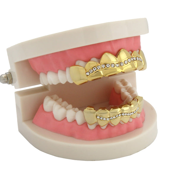 GRILLZ SET GOLD 1 ROW WAVE CZ