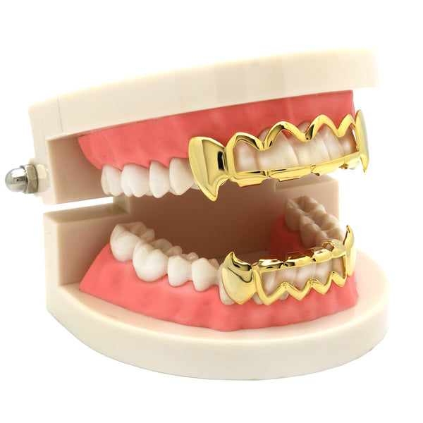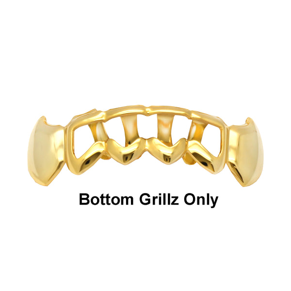 This New Hollow Fang grillz provides a stylish vampire look. Each Grillz includes a silicon mold wax alongside a set of instructions. BEST GRILLZ™Set Gold Fang Wave Hollow. [PRE-MADE GRILLZ] FDA...