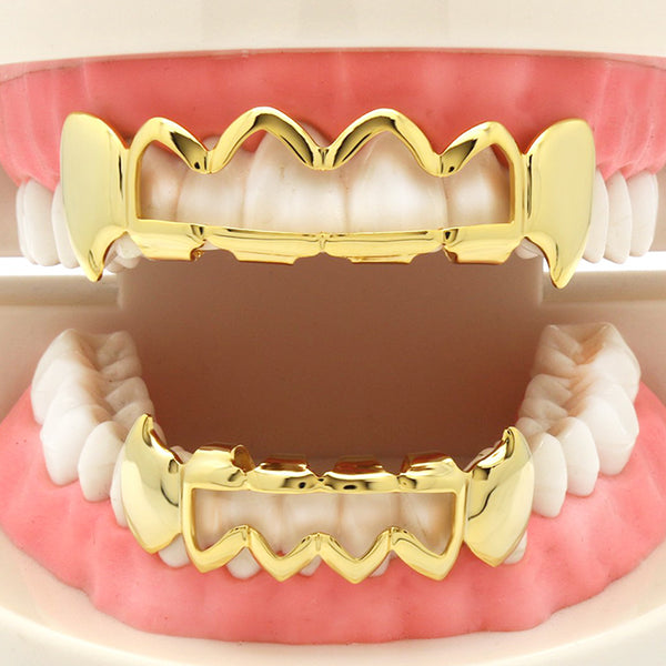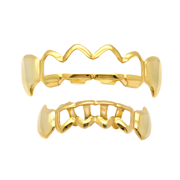 GRILLZ SET GOLD FANG WAVE HOLLOW