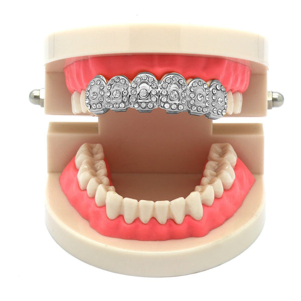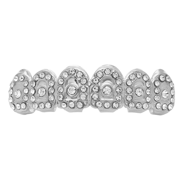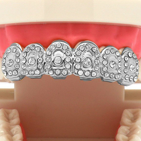This listing is for these Rhodium Plated Iced out Crown Grillz. The unique crown arrangement of the stones on these grillz will give your teeth a royal look. BEST GRILLZ™  Phodium Plated...