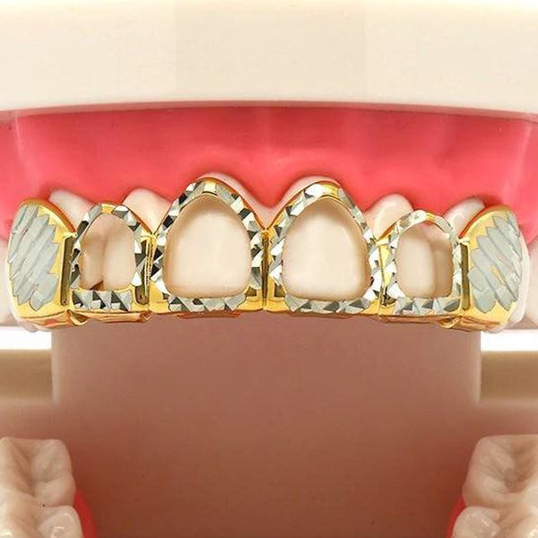 2-TONE TOP GRILLZ 4 OPEN DIAMOND CUT