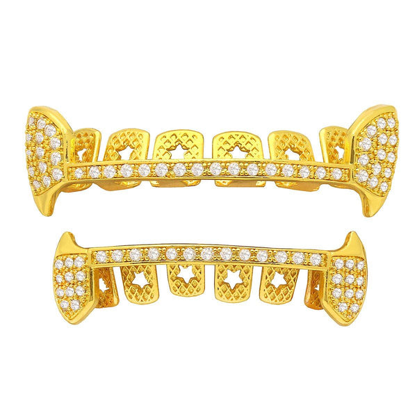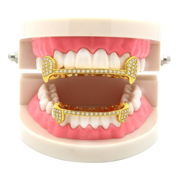 Gold Plated Full CZ Half Fang Best Grillz Set.