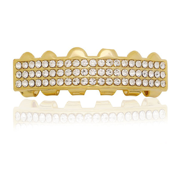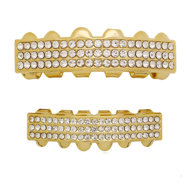 We are Presenting this three Row's top and Bottom grillz with a proud, This grillz has 3 Row stones Lined up on top of the surface and will Make beautiful...