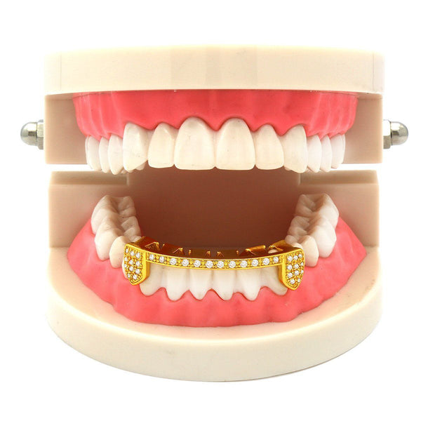 GOLD BOTTOM GRILLZ CZ HALF SLIM