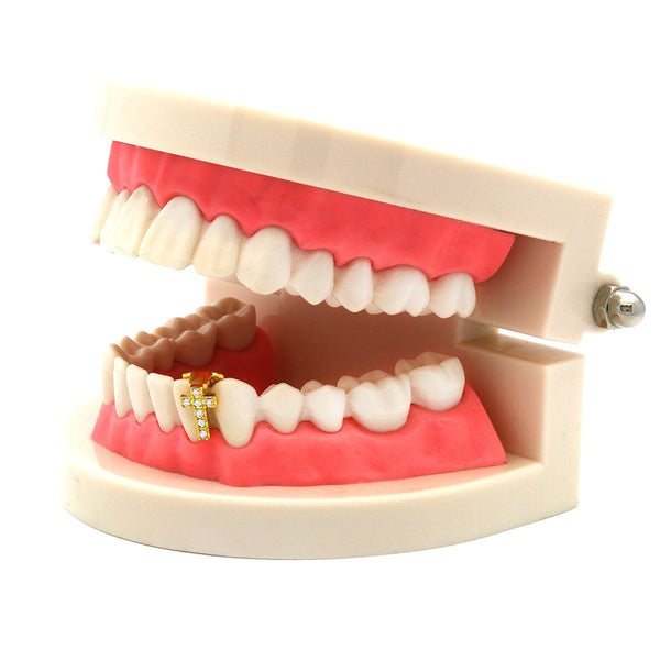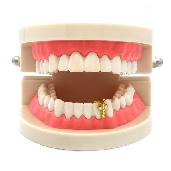 GOLD GRILLZ SINGLE TOOTH CZ CROSS