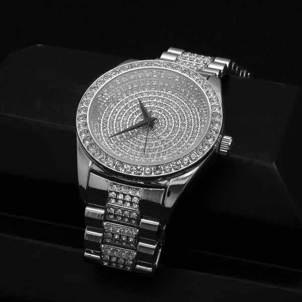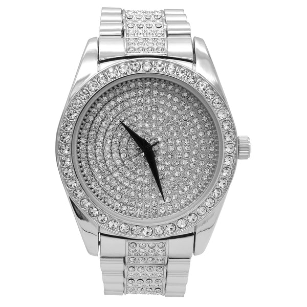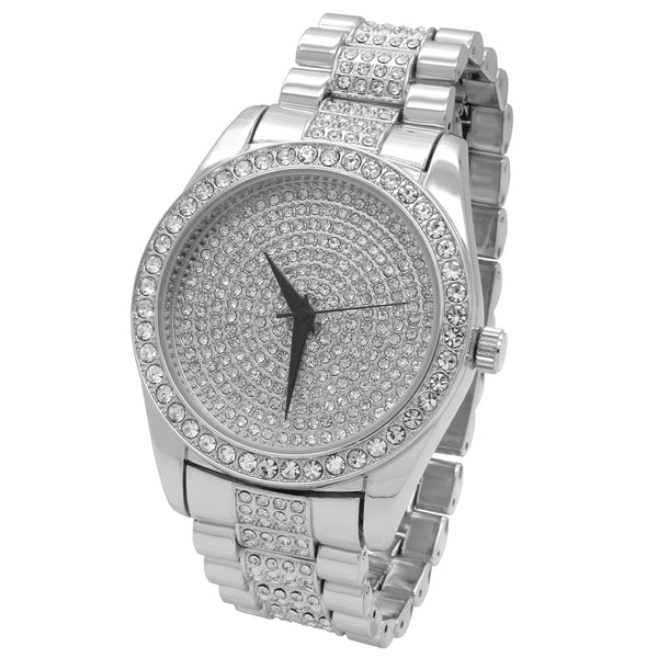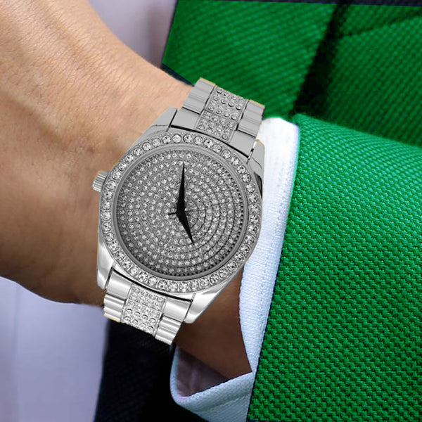 Techno Pave™ Bling Fully Iced Metal Band Wrist Watch Big Size Face Diameter: 45mm Thickness:10mm Lab Diamond Rolex Looking Design Stylish and trendy with scratch resistant mineral glass Bling Iced out bezel and...