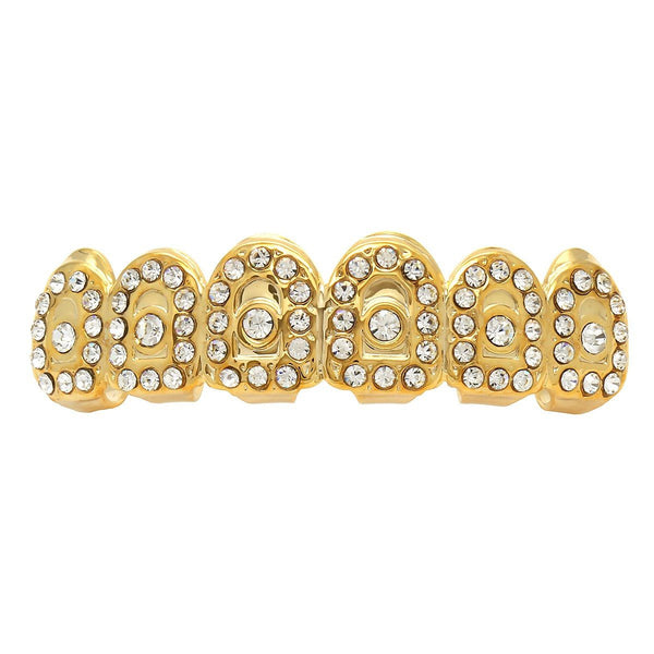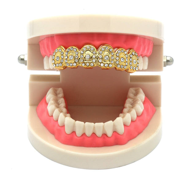 This listing is for these Gold Plated Iced out Crown Grillz. The unique crown arrangement of the stones on these grillz will give your teeth a royal look. BEST GRILLZ™ ...