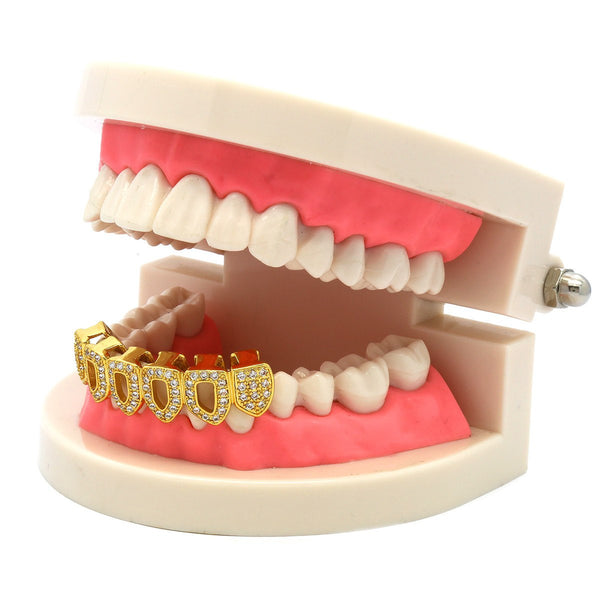 BEST GRILLZ™ Bottom Gold 4 Open CZ Grillz. [PRE-MADE GRILLZ] FDA approved (21 CFR 175,300) All our grillz are "lead free" "nickle free" and safe to wear. Gold grillz are 14k real...