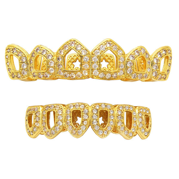 You will Receive Top and Bottom Grillz as A Set, The Grillz have 6 Openings Surrounded by Top Quality cz. It's very Unique in shape and Bling Perfect in your...
