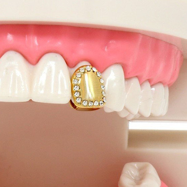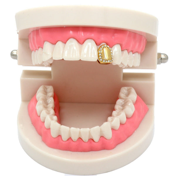 This listing is for these gold plated single tooth grillz. This single tooth capĀ  will give your mouth a subtle bling. Grillz come with a storage box for safe and...