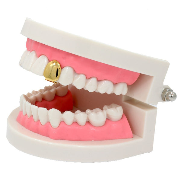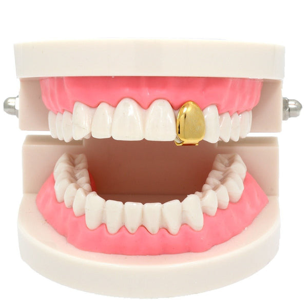 This listing is for these gold plated plain single toothgrillz. This single tooth capĀ  will give your mouth a subtle bling. Grillz come with a storage box for safe and...