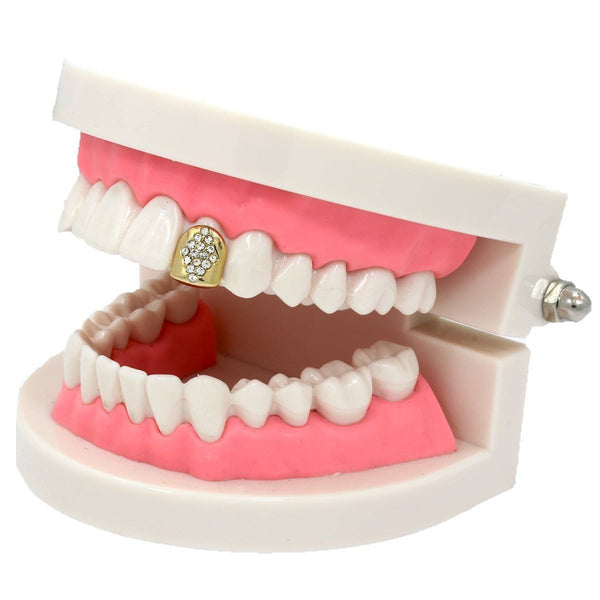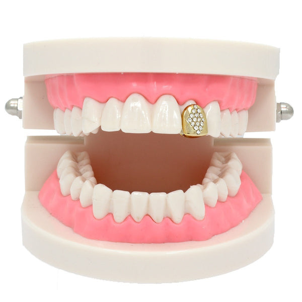 This listing is for these gold plated single tooth grillz. This single tooth capĀ  will give your mouth a subtle bling. Grillz come with a storage box for safe and...