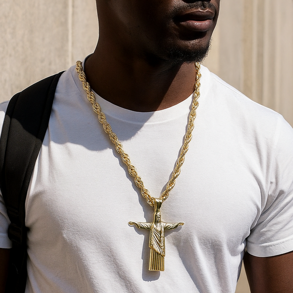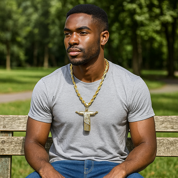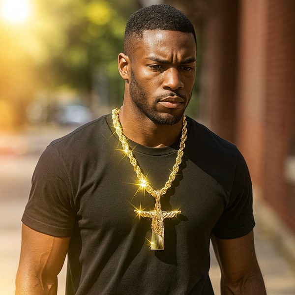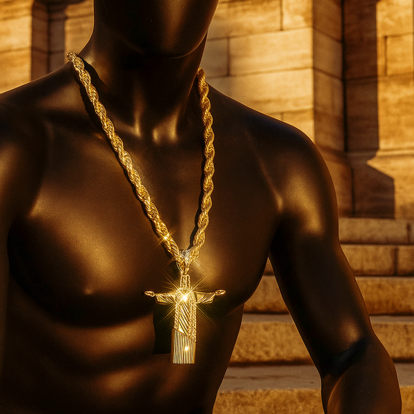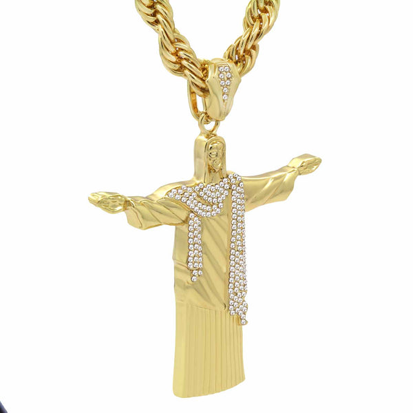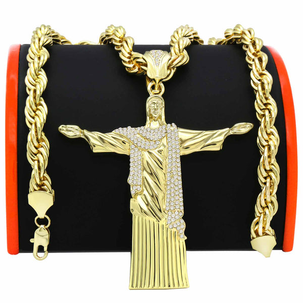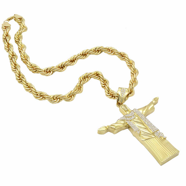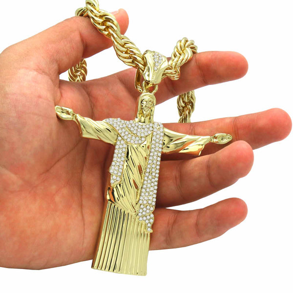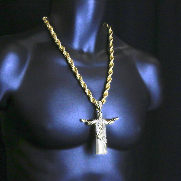 Iced Out Gold Resurrection Pendant with 30" Rope Chain – Giant Hip Hop Bling