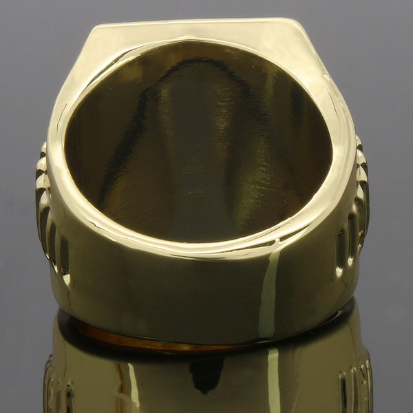 BLOCK Iced Out 14K Gold Filled Mens Ring Hip- Hop Style Goth Goddess Medusa Ring DESIGN Fashion Style for boys and men,women, girls Available Size: Mens Womens 7,8, 9, 10, 11,...