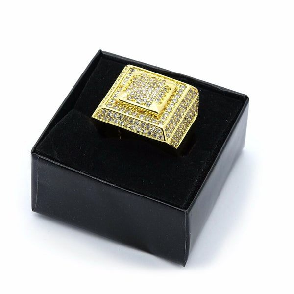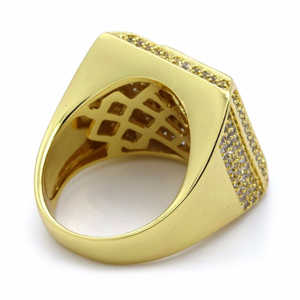 Gold 3D dome square 14K Gold Filled Mens Ring Hip- Hop Style Goth Goddess Medusa Ring DESIGN Fashion Style for boys and men,women, girls Available Size: Mens Womens 7,8, 9,...