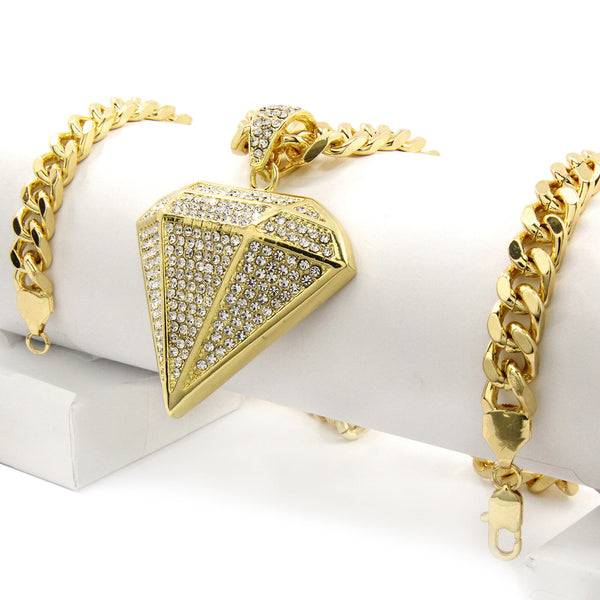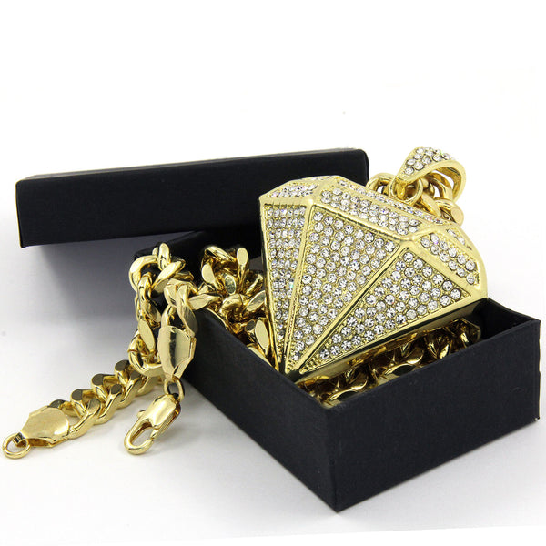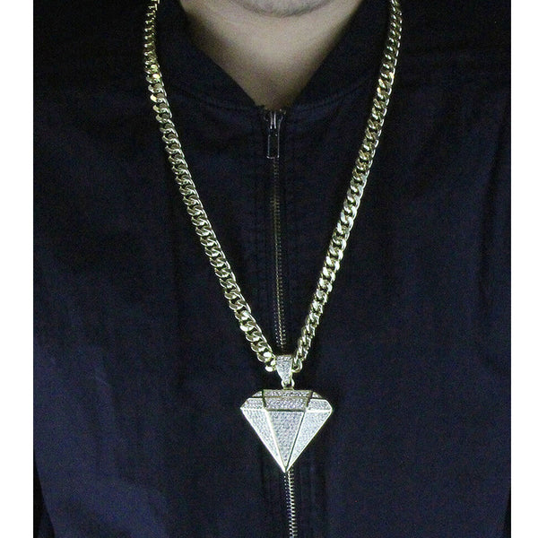 Gold Round Diamond NECKLACE 10mm Miami Cuban Link Chain – Iced Out Gold Pendant Necklace