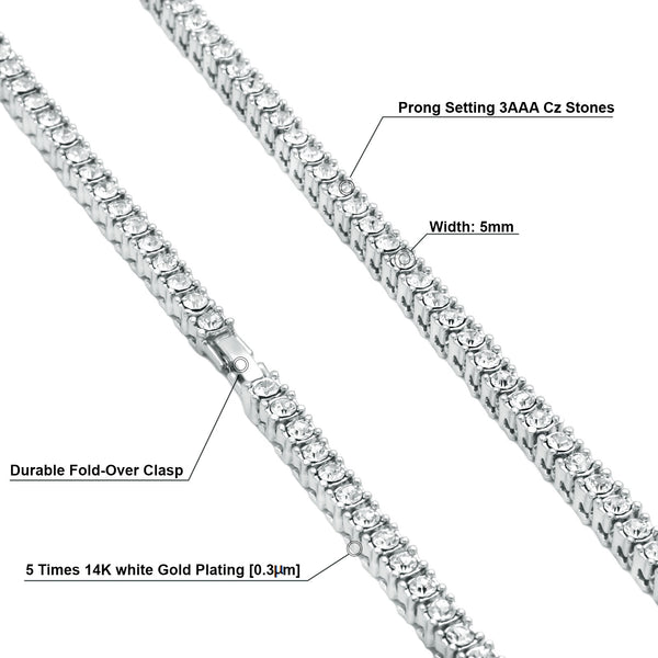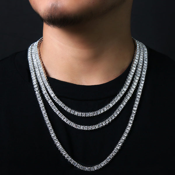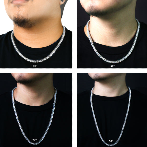 White GOLD TENNIS CHAIN 18" 20" 24" 30"